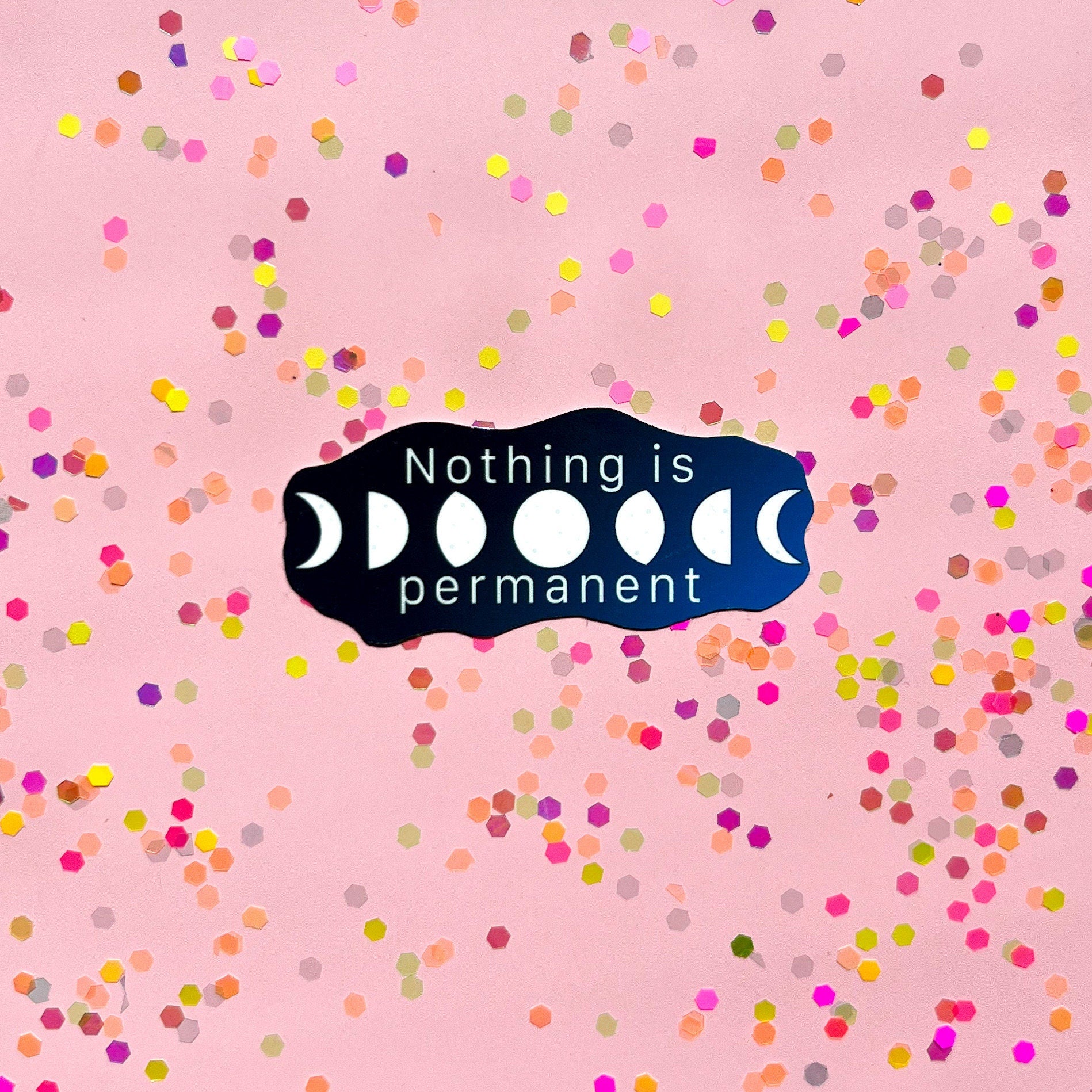 The nothing is permanent sticker is a perfect addition to any water bottle, laptop or notebook!